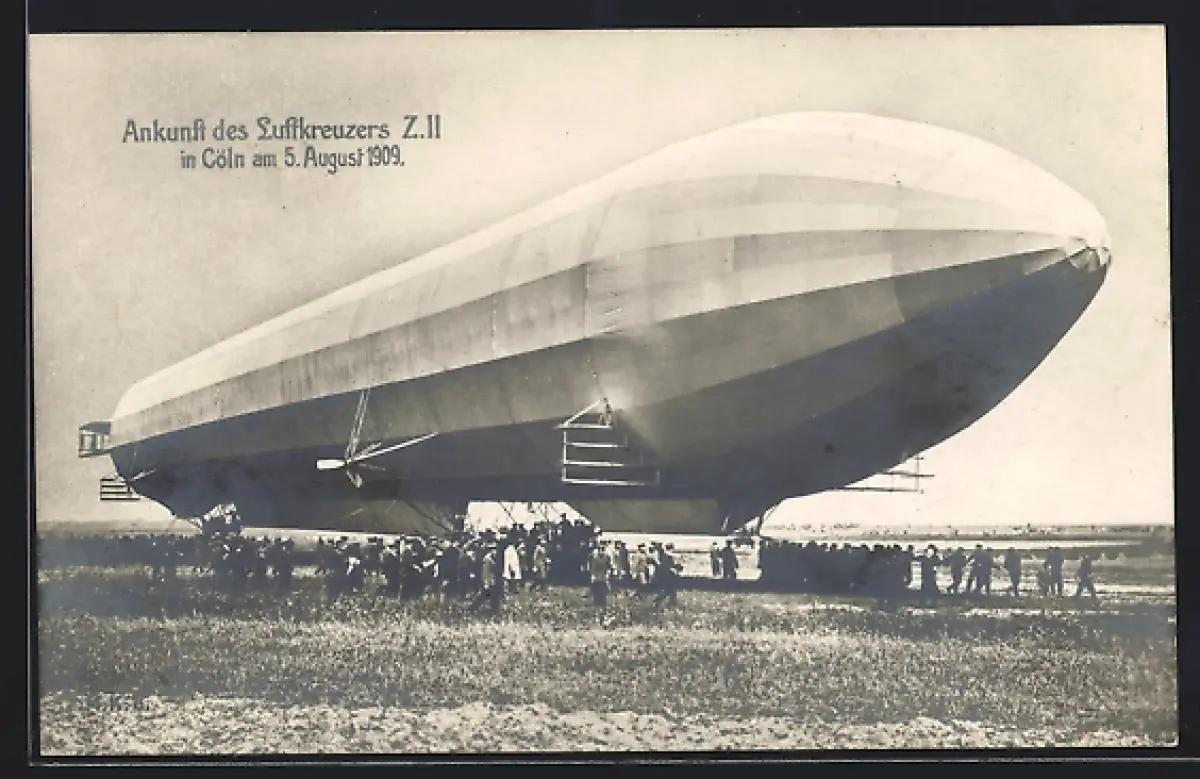 AK Köln-Ossendorf, Landung Luftschiff Zeppelin Luftkreuzer Z. II am 5. August 1909 auf dem Butzweilerhof