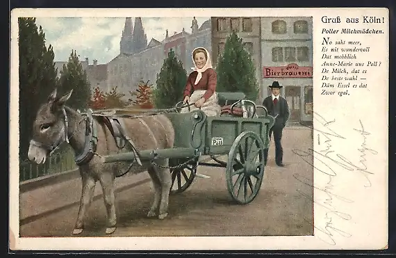 AK Köln-Poll, Poller Milchmädchen auf dem Eselgespann