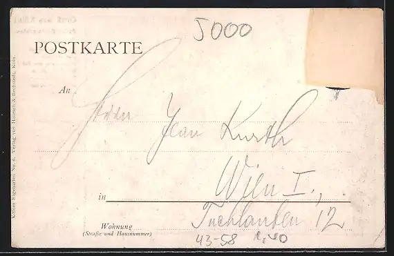 alte Ansichtskarte, gelaufen, Eckknick und Abriebspur li. unten, Briefmarke entfernt, rückseitig Oberflächenschaden, guter Zustand