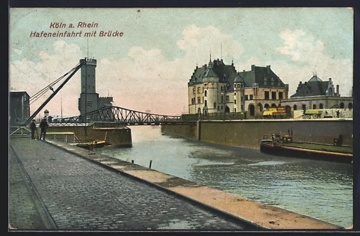 AK Köln / Rhein, Hafeneinfahrt mit Brücke
