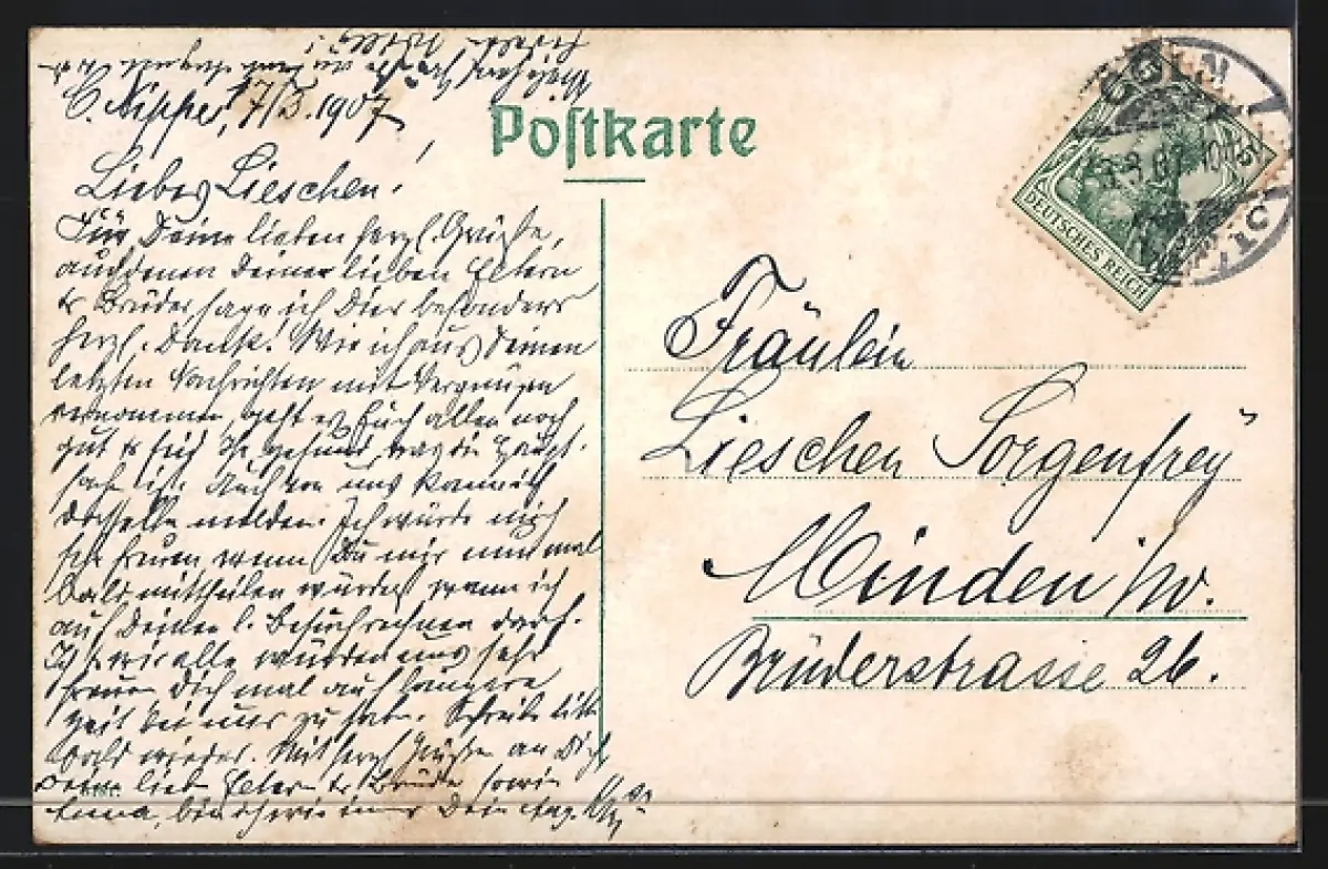 alte Ansichtskarte, gelaufen 1907, guter Zustand