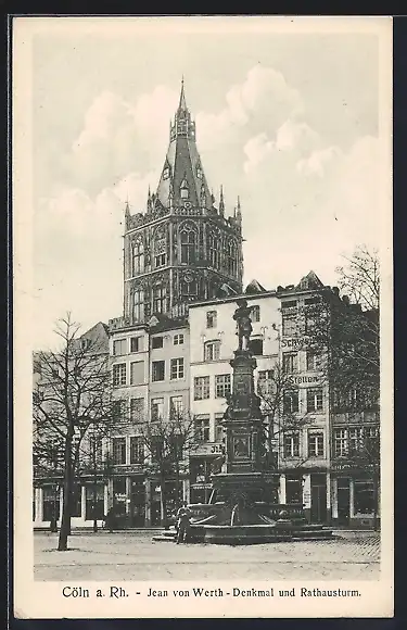 AK Köln / Rhein, Jean von Wert-Denkmal am Rathausturm