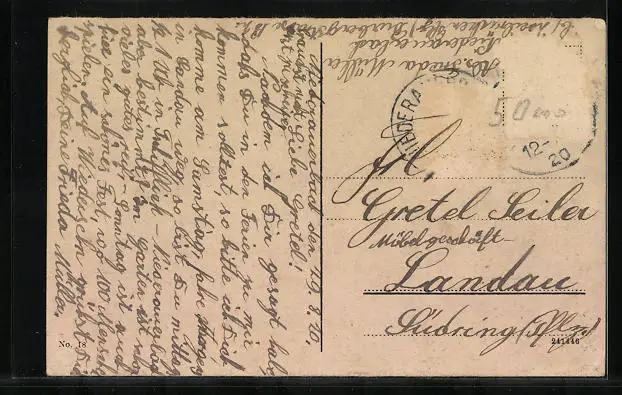 alte Ansichtskarte, gelaufen 1920, Briefmarke entfernt, rückseitig Oberflächenschaden, Eckknick li. oben, guter Zustand