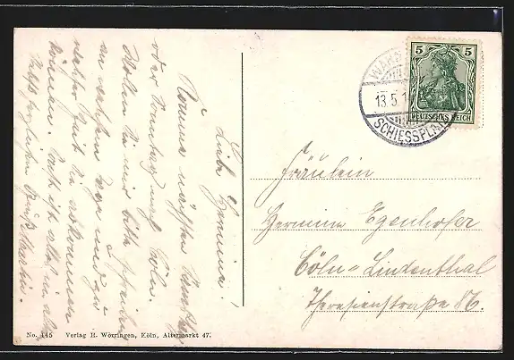 gelaufen 1914, Abriebspuren unten mittig, guter Zustand