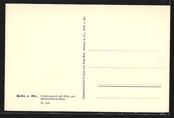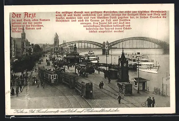 AK Köln a. Rh., Frankenwerft mit Strassenbahn und Blick auf Hohenzollernbrücke