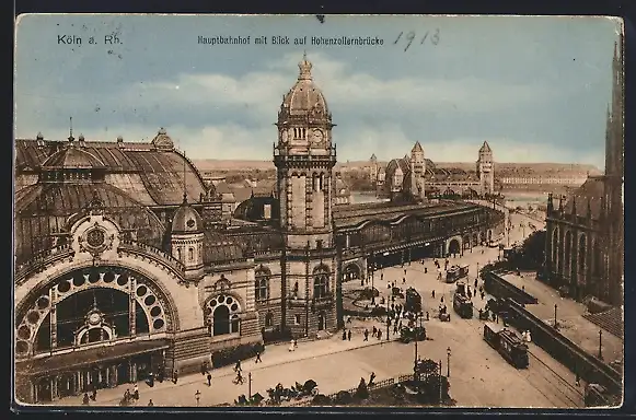 AK Köln a. Rh., Hauptbahnhof mit Blick auf Hohenzollernbrücke und Strassenbahn