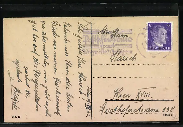 alte Ansichtskarte, gelaufen 1943, Abriebspuren li. oben u. unten, guter Zustand