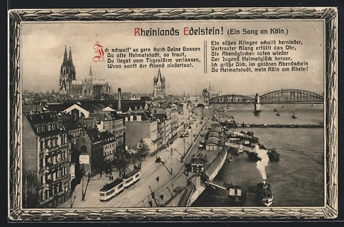 AK Köln a. Rh., St. Martin, Dom und Stapelhaus, Strassenbahn