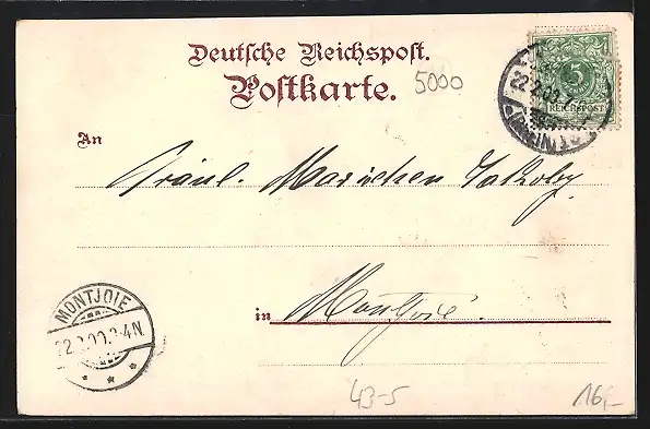 alte Ansichtskarte, gelaufen 1900, guter Zustand