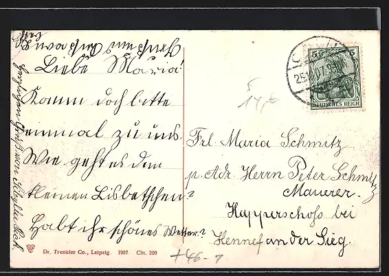 alte Ansichtskarte, gelaufen 1907, Eckknick re. oben, guter Zustand