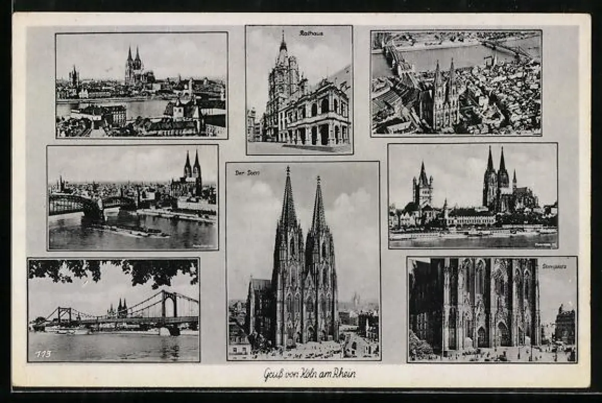 AK Köln am Rhein, Dom, Rathaus, Hohenzollernbrücke
