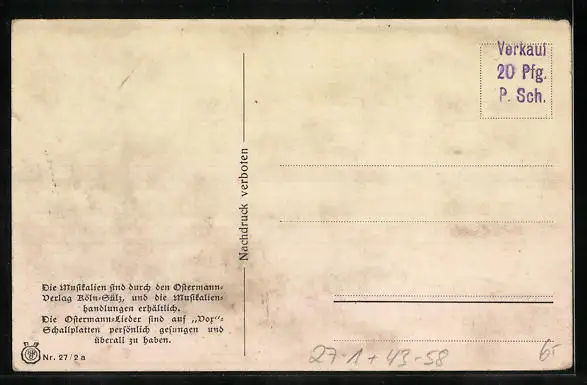 Ein Angebot in Ansichtskarten Musik: Liedkarten - 770 weitere Angebote in dieser Kategorie