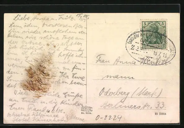gelaufen 1913, rückseitig Klebe- und Papierreste, guter Zustand