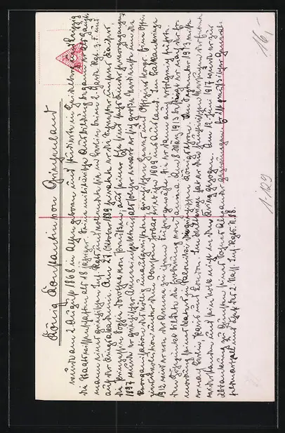 Personenbezogene Daten auf der Rückseite der Karte wurden durch blauen Textmarker unkenntlich gemacht. Die blauen Stellen sind auf die Vorderseite durchgeweicht und wirken sich negativ auf das Postkartenfoto aus