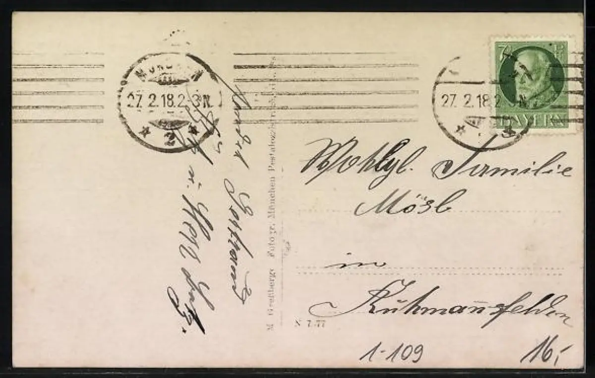 alte Ansichtskarte, gelaufen 1918, Eckknick li. oben, guter Zustand