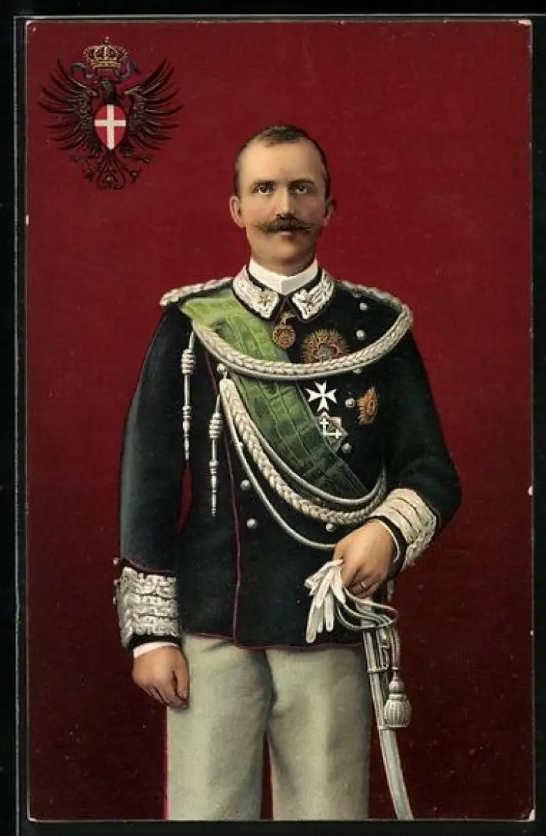 AK König von Italien, Uniform-Portrait, Wappen