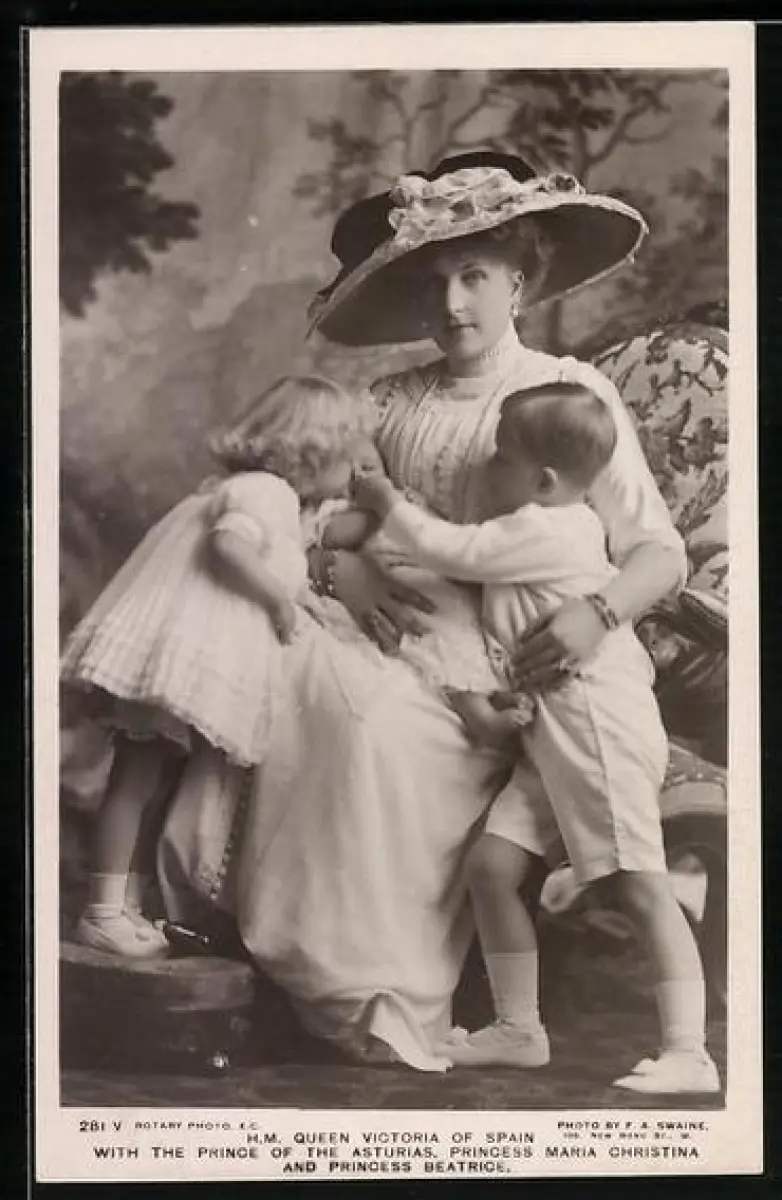 AK Königin Victoria von Spanien mit dem Prinzen von Asturien, Prinzessin Maria Christina & Prinzessin Beatrice