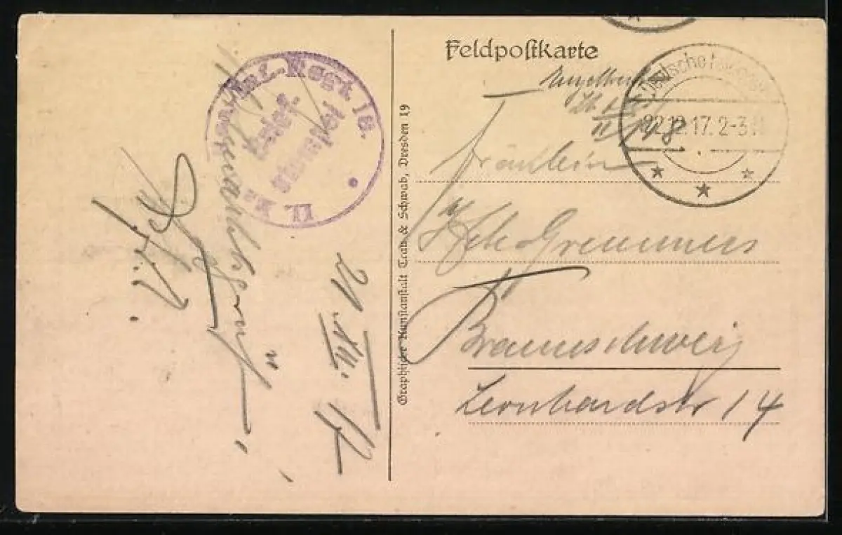 alte Ansichtskarte, gelaufen 1917, Eckknicke oben, guter Zustand