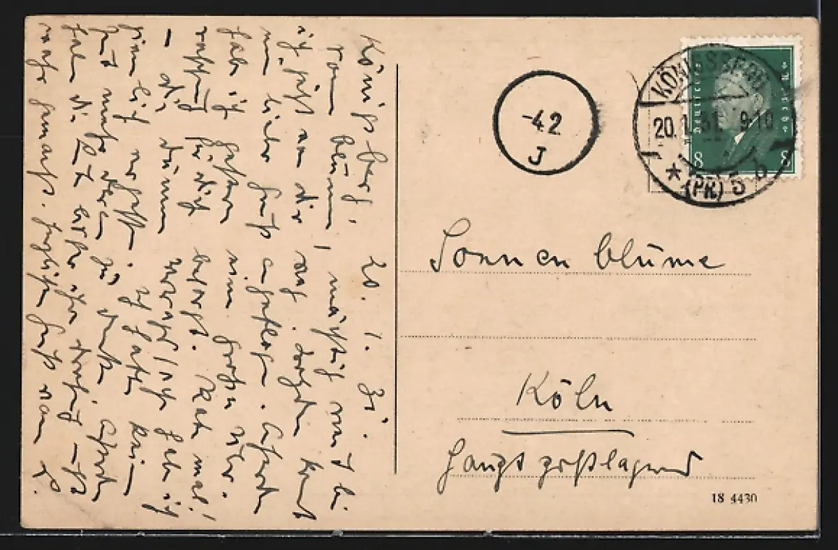 gelaufen 1931, Eckknicke li. oben u. re., Bugspur re. unten, guter Zustand