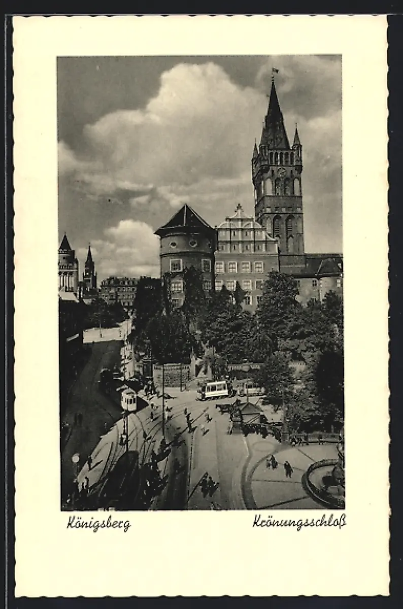 AK Königsberg, Krönungsschloss mit Strassenbahn