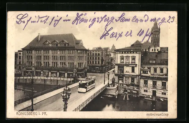 AK Königsberg, Strassenbahn auf der Krämerbrücke