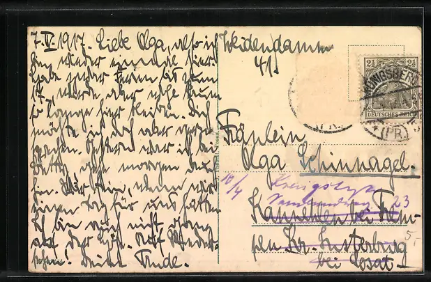 alte Ansichtskarte, gelaufen 1917, Briefmarke entfernt, guter Zustand