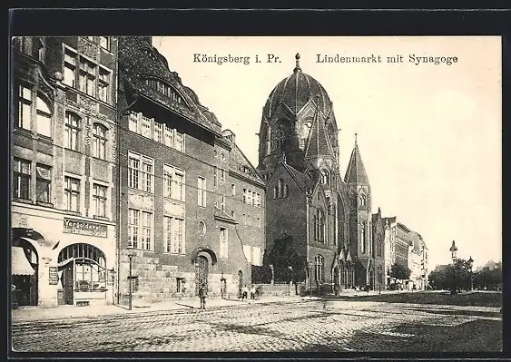 AK Königsberg i. Pr., Lindenmarkt mit Synagoge und Vergolderei