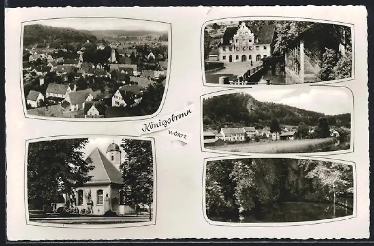 AK Königsbronn /Württ., Ortsansicht, Kirche, See
