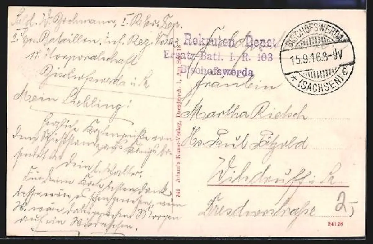 alte Ansichtskarte, gelaufen 1916 als Feldpost, guter Zustand