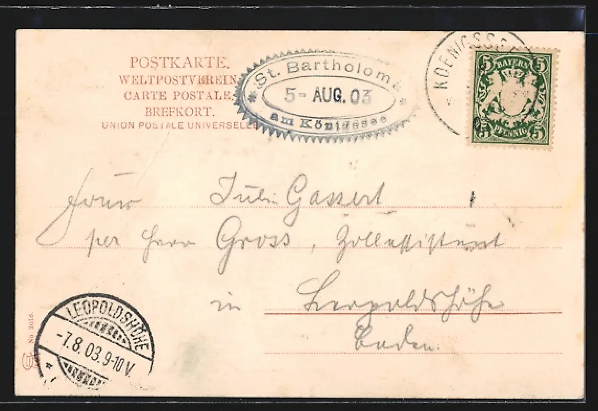 alte Ansichtskarte, gelaufen 1903, guter Zustand