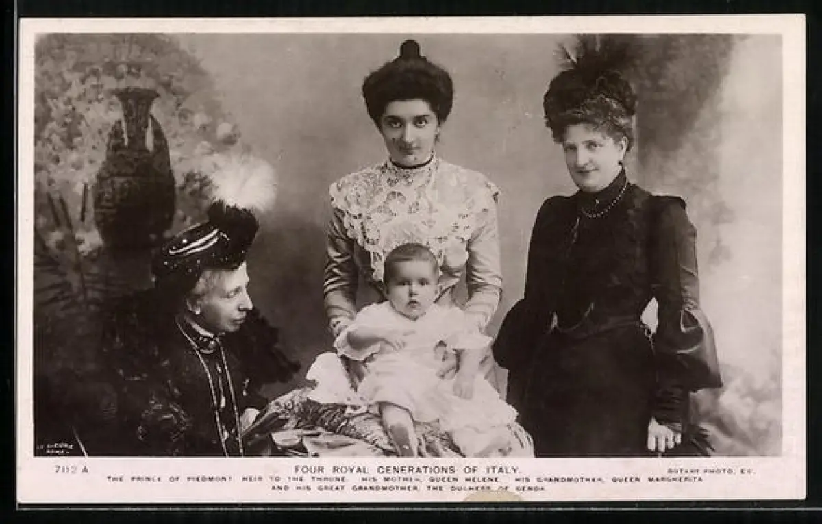 AK Königsfamilie von Italien, Prinz von Piedmont, seine Mutter Königin Helene, seine Grossmutter Königin Margherita