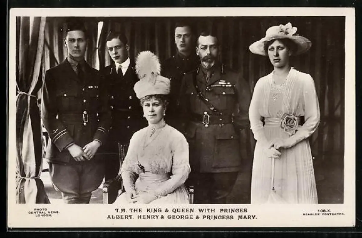 AK Königshaus von England, The King & Queen with Princes Albert, Henry & George