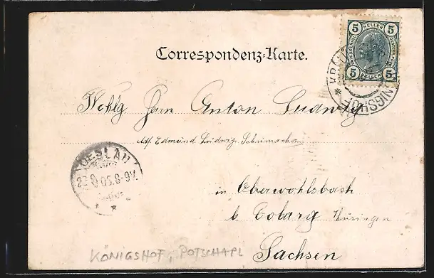 alte Ansichtskarte, gelaufen 1905, guter Zustand