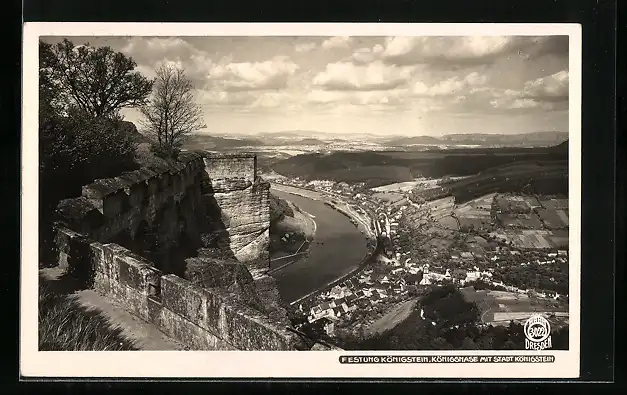AK Königstein / Sächs. Schweiz, Festung, Königsnase, Blick auf Ort