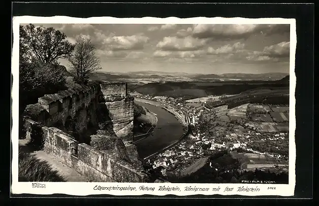 AK Königstein / Sächs. Schweiz, Festung, Königsnase, Blick auf Ort