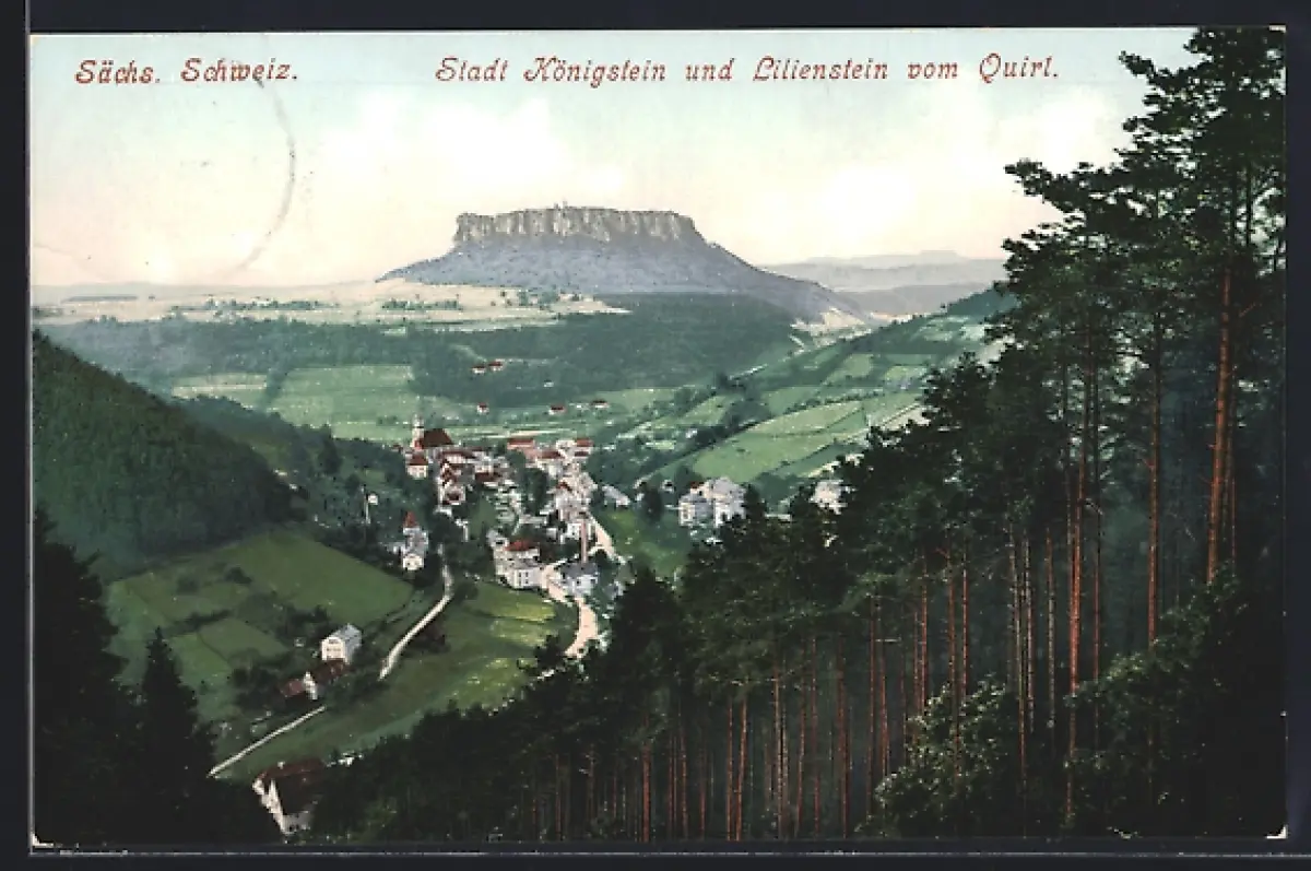 AK Königstein /Sächs. Schweiz, Stadt Königstein und Lilienstein vom Quirl
