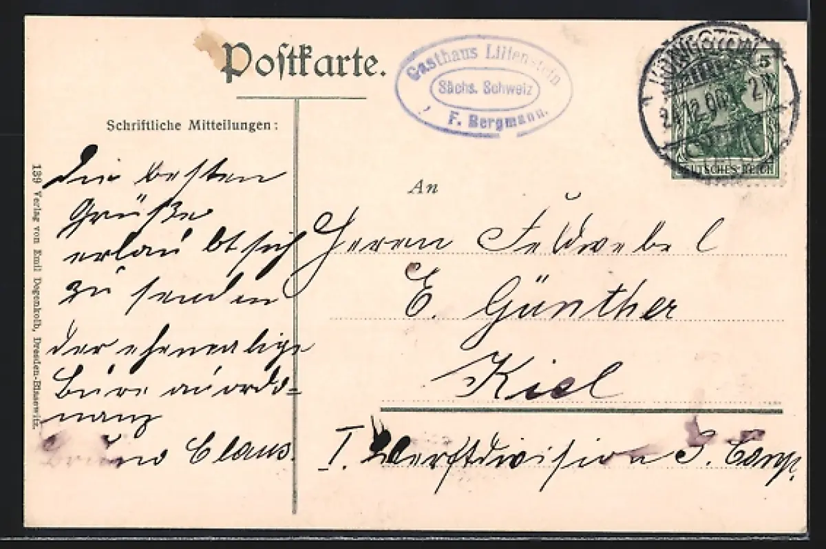 alte Ansichtskarte, gelaufen 1906, guter Zustand