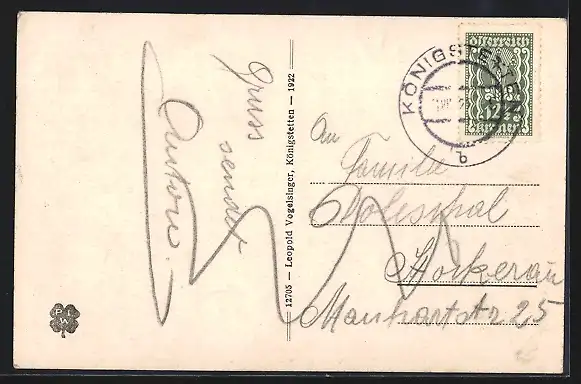 alte Ansichtskarte, gelaufen 1922, Bugspur oben li., guter Zustand