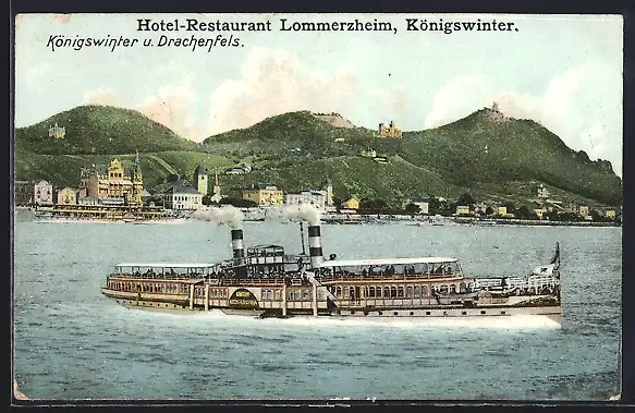 AK Königswinter, Rheindampfer Auguste Victoria vor dem Drachenfelsen auf dem Rhein