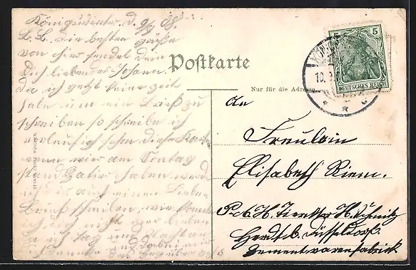 alte Ansichtskarte, gelaufen 1908, Eckknick li. oben, guter Zustand