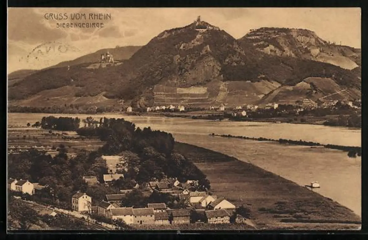 AK Königswinter /Siebengebirge, Rheinansicht, Drachenfels, Burgruine