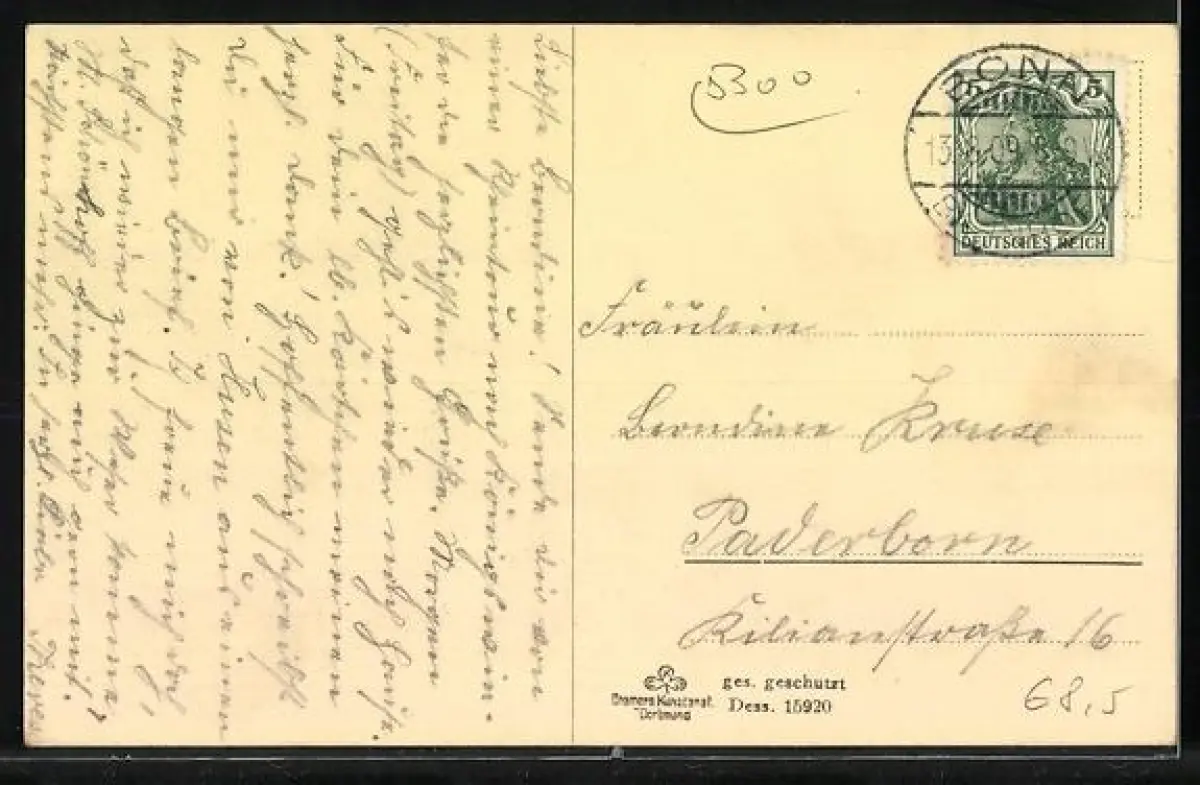 alte Ansichtskarte, gelaufen 1909, Stempelspur, guter Zustand