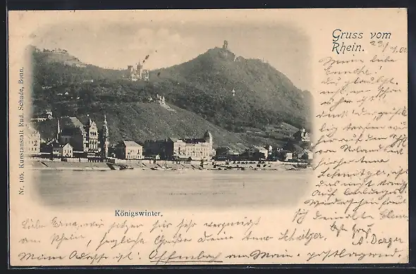 AK Königswinter a. Rhein, Blick vom Rhein auf Drachenfels