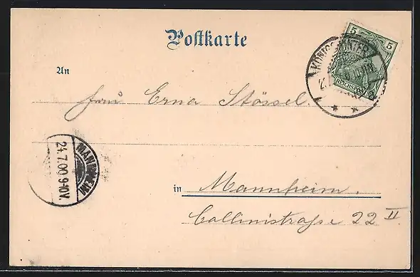 alte Ansichtskarte, gelaufen 1900, guter Zustand