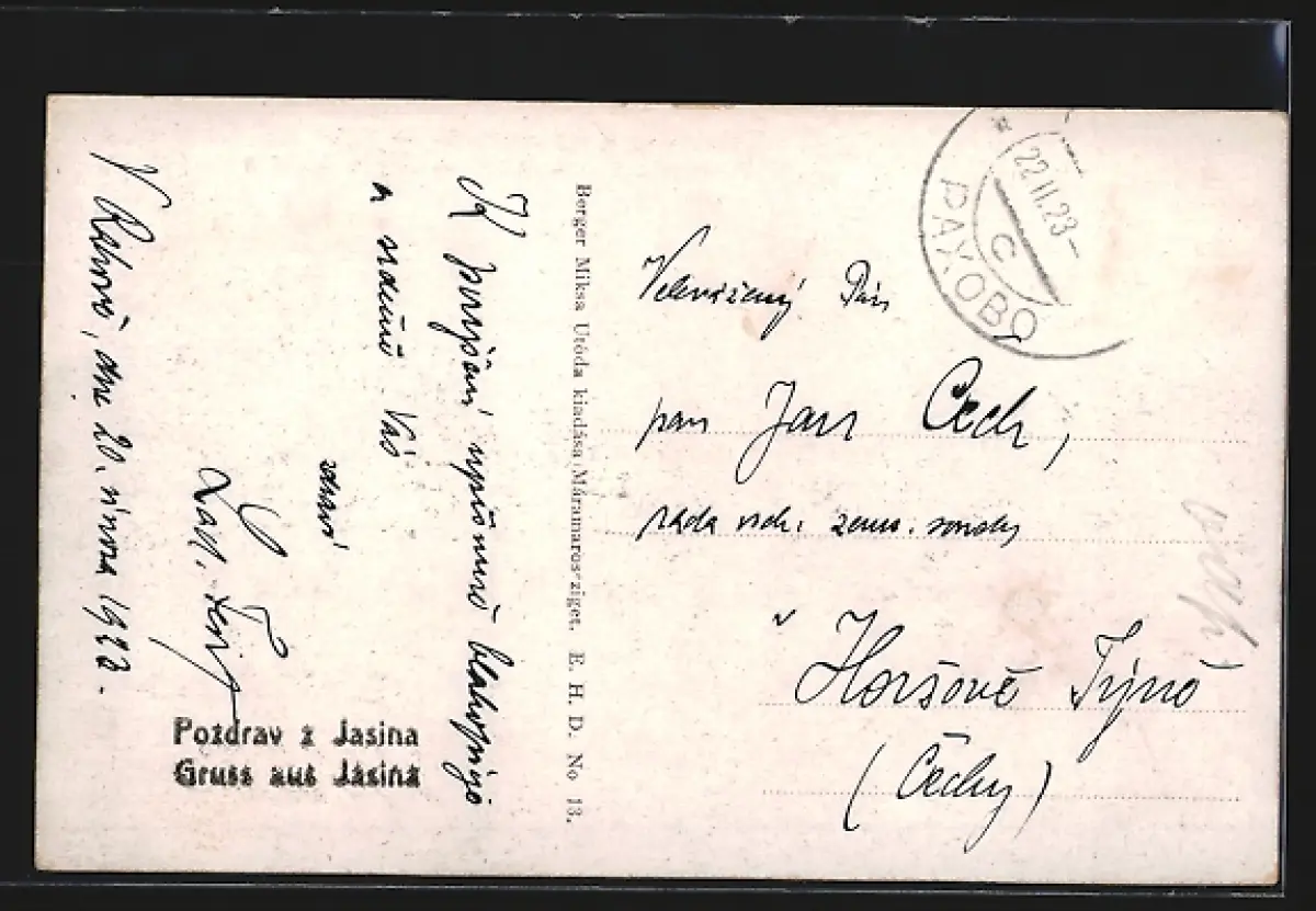 gelaufen 1923, Briefmarke entfernt, Eckknick li. oben, guter Zustand