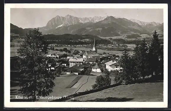 AK Kössen /Tirol, Ortsansicht gegen Kaisergebirge