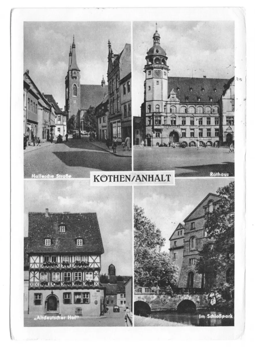 postalisch gelaufen, gestempelt: Köthen (Anh) 2, 4.3.60