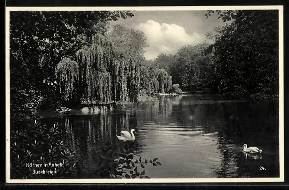 AK Köthen /Anhalt, Blick auf den Buschteich