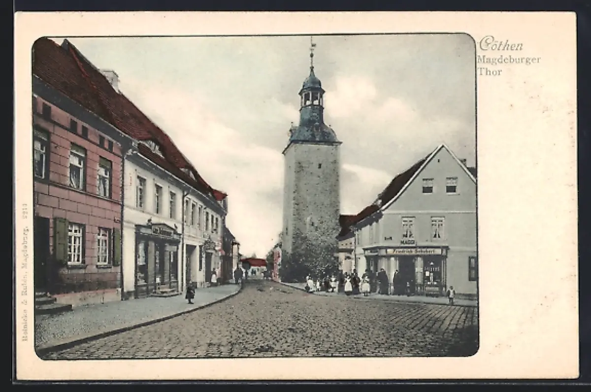 AK Köthen / Anhalt, Strassenpartie am Magdeburger Thor, Geschäfte
