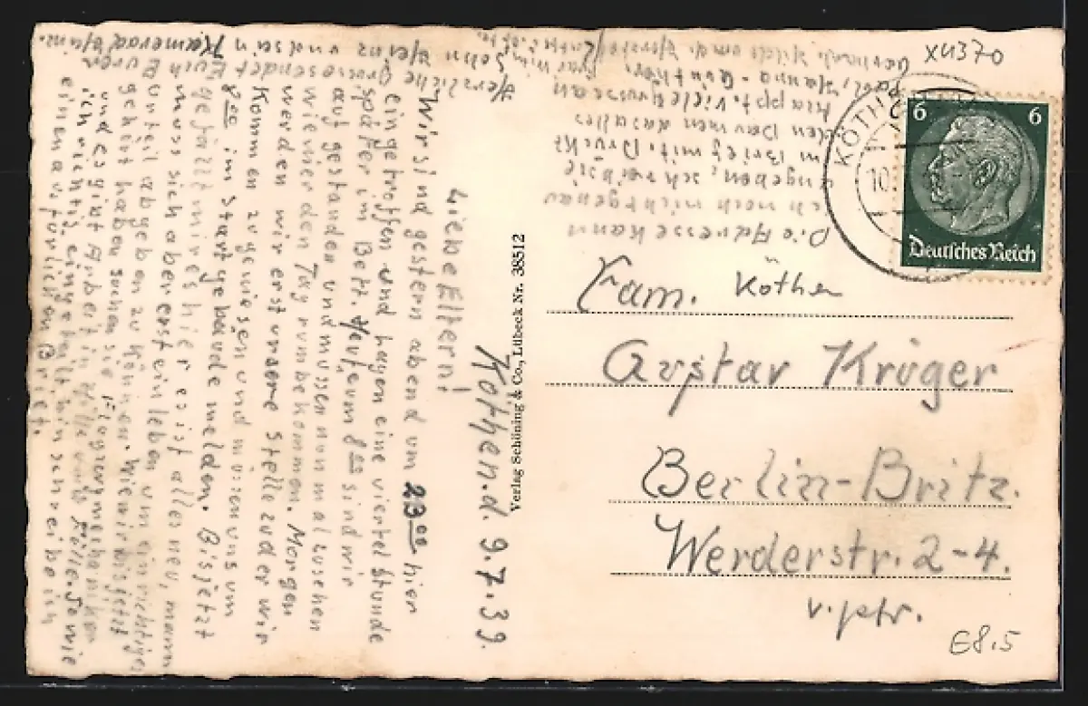 alte Ansichtskarte, gelaufen 1939, Bugspur li.oben, guter Zustand